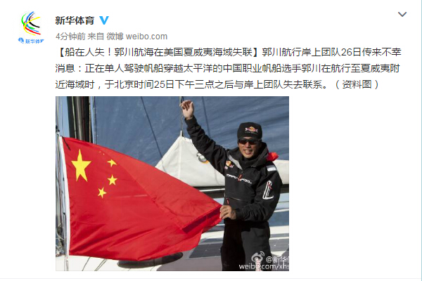 ![]() 北京时间10月26日晚,据新华体育微博消息,正在单人驾驶帆船穿越太平洋的中国职业帆船选手郭川在航行至夏威夷附近海域时,于北京时间25日下午三点之后与岸上团队失去联系。 郭川航行岸上团队26日传来不幸消息:正在单人驾驶帆船穿越太平洋的中国职业帆船选手郭川在航行至夏威夷附近海域时,于北京时间25日下午三点之后与岸上团队失去联系。” 另据最新消息,靠近三体船航行海域的夏威夷火奴鲁鲁(檀香山)当地海事救援机构派出搜救飞机,发现了帆船,但甲板上无人。第二架搜救飞机也已飞抵事发海域,扩大搜救范围。美国海军确认已派两艘船驰援,搜救人员将登上三体船检查。 中国船长郭川经过在美国旧金山一段时间的休整和准备,确定于美国时间18日起航,挑战单人不间断跨太平洋航行的世界纪录。 51岁的郭川独自驾驶三体大型帆船,从旧金山地标建筑金门大桥出发,目的地为中国上海。这次航行不仅将是帆船史上首次从旧金山到上海的单人跨太平洋航行,更是一次挑战之旅,目标是改写由意大利玛莎拉蒂号船队创下的旧金山到上海21天的帆船速度世界纪录。郭川希望在20天内、甚至十五六天内完成他的单人跨太平洋航行。 郭川此行也是一次促进中美两国帆船运动和航海文化交流的航程。作为世界“和平与体育”组织唯一的中国大使,郭川志在通过航行传播和平的理念,以太平洋为纽带,促进两国航海文化的交流,增进两国友谊。 郭川,男,1965年1月出生,籍贯山东青岛。郭川毕业于北京航空航天大学,并随后在北京大学取得MBA学位,曾参与过国际商业卫星的发射,现为职业竞技帆船赛手。郭川是两项航海世界纪录保持者。2013年,他驾驶40英尺帆船从青岛出发,历时138天完成单人不间断环球航行,创造了该级别无动力帆船单人不间断环球航行的世界纪录。两年后,他率领国际船队驾超级三体船成功创造了北冰洋(东北航线)不间断航行的世界纪录。 希望郭川平安无事! |
