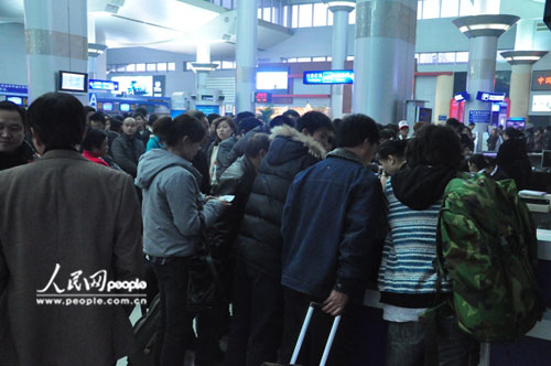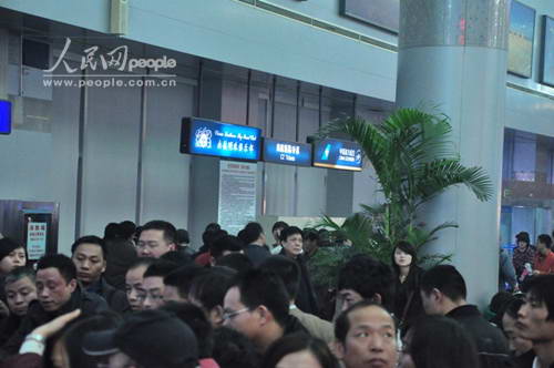 大批旅客在机场聚集,各航空公司柜台前挤满了改退签票和问询的旅客。姜先生乘坐的是11点45分中国国际航空公司飞往北京的航班,姜先生10点抵达机场,办理了乘机手续后,在登机口才得到通知航班延误。姜先生气愤地对记者说:面对大雾,他没有怨言,而机场方面的冷漠、航空公司的冷淡、中午发的冷白饭,如此的“三冷”服务,使他无法忍受。