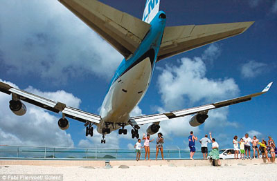 据香港《文汇报》17日报道,巨大的客机零距离从头上擦过,想必是很多人难得一见的“奇景”。不过对在加勒比圣马丁岛马霍海滩度假的游客来说,这却是每天都有的“娱乐项目”。朱丽安娜公主国际机场距离马霍海滩仅数百米远。由于机场跑道很短,每天飞机起飞时总会以极低的高度,经过不远处的海滩,高度只有18米。 |