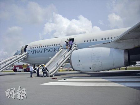 国泰客机在香港机场轮胎起火 承认两引擎失灵