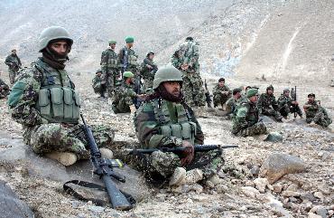 10月13日,阿富汗国民军军人在坠机现场警戒。10月12日晚,一架民用运输机在距首都喀布尔20多公里处的山间坠毁,8名机组成员全部身亡。