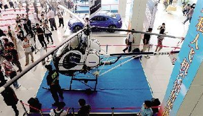 直升机进卖场,吸引了不少参观者。