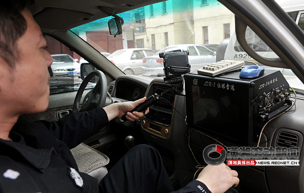 4月15日,芙蓉区交警大队负责人约见潇湘晨报记者,介绍被贴“人民罚单”的车辆是隶属机动中队的移动电子抄牌车,车里设有电子抄牌专用设备。图/潇湘晨报滚动新闻记者 邵骁歆