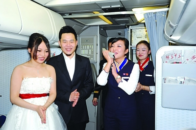情侣包下飞机结婚 在三万英尺高空交换婚戒