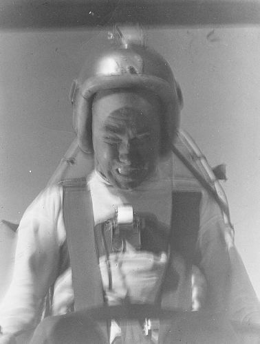 “地球上最快的人”——斯塔普博士,正在用自己试验高达46G的过载,他的献身精神为后世的航空救生技术发展做出了莫大贡献,注意他的脸部已经充血
