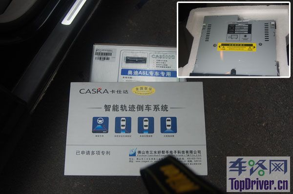 1、原车的整体效果! ![]() 2、主要配件展示 ![]() 3、卡仕达智能倒车轨迹系统,配A6L专车专用摄像头 ![]() 4、智能倒车轨迹系统,以及A6L专用的摄像头 ![]() 5、升级加装的导航功能。一机双图 ![]() 6、安装完成后的整体效果图 ![]() |