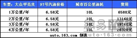 为了好好地伺候亮丽的小虫子,给它用97号油也是理所当然的。以编者的了解,购买甲壳虫的消费者一般都是家里的第二甚至是第三辆汽车,所以甲壳虫平时的主要作用仅仅是短途的驾驶。用它穿州过省的机会较少,用于会客见面也难有用武之地,所以每年1万公里的驾驶里程属于正常水平。而油耗水平百公里10L左右,也能得到编者的接受,尽管编者没有长时间拥有一辆甲壳虫,但编者曾驾驶过一周时间,油耗水平在同级车水平。而且购买它的重要目的是亮丽的外型,何况它10L的油耗,有什么好怨言的呢?难道还要开着它去拉货?