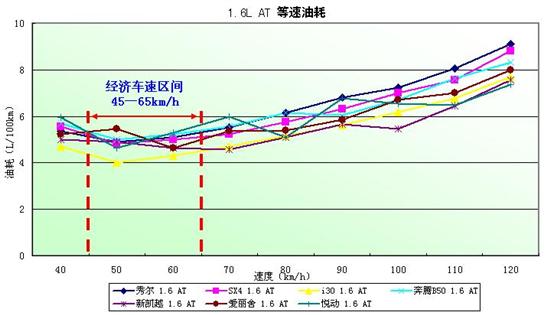 在油价“奔七”的今天,油费在汽车日常使用过程中所占的费用比例是最多的,如何降低油耗减少油费成为众多车主聊的最多的话题。而影响油耗的一个主要因素就是车速,适当的车速能使汽车保持较高的燃油经济性,也就是通常所说的“经济车速”。那究竟这个“经济车速”是多少呢?一起来看看下面的文章…… 汽车的日常使用过程中,支出最大的部分毫无疑问是油费了。自从国务院决定自2009年1月1日起实施成品油税费改革以来,油价可以说是涨多跌少,一路攀升,现在油价已经到了“奔七”的水平了。除了少数“富人”和“官人”在用车时对油价不是很敏感外,大部分车主还是会谈“油”色变的。油价的涨跌普通百姓可以说是无权干涉的,所以,对于油费的的控制也只能在自己和汽车的身上“下手”了。就汽车本身来说,各个厂家都在这方面推出了N多种新技术来提高汽车的燃油效率。大家常听到的诸如FSI,VTEC,VVT等发动机技术的应用确实可以有效的降低油耗,在汽车设计方面也常常可以听到通过降低车重和风阻系数等手段来降低油耗。但是,这些油耗的影响因素在汽车交到用户手中之前就已经是无法改变的了。汽车日常的使用过程中,主要可以通过控制车速,车重和胎压这几方面来实现油耗的降低。车重控制方面很好理解,把不该放在车上的东西统统清理掉,油箱如果不是有必要的话请不要加满,减少车重可以对油耗的降低贡献不小的力量。胎压的控制也很重要,如果胎压太低会导致轮胎与地面的摩擦力大增而增加能量消耗,使得汽车油耗增加,所以,请参照胎压控制标签,将胎压控制在适当的范围内。车重和胎压的控制大家操作起来相对简单,但是车速控制方面可能很多朋友就不一定了解了。在这,通过一些数据来说说如何控制车速来实现油耗的降低,究竟什么车速才能使油耗最低,才是经济车速呢? 毛主席告诫咱们:“没有调查就没有发言权!”对此,我们也做了大量的调查,从获得的数据中提取了比较有代表性的部分数据得到了下面的图线! 通过数据可以发现,排量为1.3升手动挡的汽车,经济车速区间在45km/h至65km/h之间。五辆接受测试的小车中,等速油耗表现最佳的是长城炫丽,时速50公里时油耗为百公里3.77升,作为自主品牌能有这样的成绩实属不易。而作为“国民车”的夏利N5所测得的油耗成绩与其不到一吨的车身自重实不相符。 从以上排量为1.6升自动挡7台车的数据可以看出,其经济车速区间在45km/h至65km/h之间,表现最好的是北京现代I30,时速50公里时油耗仅为百公里4.01升,这和它采用的现代最新γ发动机有很大关系,而配备相同发动机的起亚秀尔表现却比I30相距甚远,这大概和秀尔略带粗犷的外形有关吧。 7台排量为1.8升自动挡的汽车,经济车速区间也在45km/h至65km/h之间。等速油耗表现抢眼的得数本田旗下的锋范和思域了,锋范时速50公里时百公里油耗仅为4.26升,甚至低于排量为1.3的小车。而思域的油耗测试数据也基本和其宣传的“1.6L的油耗和2.0L的动力”相吻合,由此可见,本田的i-VTEC发动机技术确实有过人之处。 排量为2.0至3.0升之间自动挡中高级轿车,其经济车速区间在55km/h至75km/h之间,比小排量汽车略高。来自福特旗下的致胜在等速油耗测试中也体现了美国风格,其各个速度的等速油耗甚至过了排量3.0升的奔驰和宝马,这不得不让人替致胜的前途担忧,这种高油耗的车与当下的“低碳生活”似乎背道而驰了。 (注:数据源自易车测试) 从以上图表来看,不难发现排量在2.0以下的轿车想获得相对最低的油耗最好将速度控制在45km/h至65km/h之间,而排量在2.0升以上的中高级轿车低油耗速度区间在55km/h至75km/h之间。可能有人会有疑问,为什么会是这个速度区间油耗最低呢?这里需要引入一个相对专业点的词了——发动机负荷率。当汽车在低挡低速行驶时,地面摩擦力和空气阻力都不是很大,发动机负荷率相对较低,发动机消耗了相同的汽油量但是却还有没有把所有的力气都用上,所以油耗相对较高;而当汽车在高挡高速行驶时,地面摩擦力和空气阻力对汽车都有较大的影响,消耗了一部分发动机工作提供的能量,发动机负荷率也相对较高,导致需要喷更多的油来提供动力,因而油耗也是非常的高。对于2.0L排量以上的中高级轿车,由于其扭矩相对小排量汽车更大,在相同路况下行驶时,最合适的发动机负荷率会在一个更高的速度出现,此时得到所谓的“经济车速”,这也和上面试验数据的图线相符。 事实上,发动机负荷率、车速、有效油耗这三者是相辅相成的,又渗透、又制约。但是在良好的路面行驶的车辆,可以适当增加车速,以提高发动机负荷率使有效油耗值上升,另一方面,由于车速的增加,可能会使转速超过发动机经济转速,此时有效油耗值略有下降,若综合两方面的效果,前者使有效油耗值值上升,后者使有效油耗值下降,相互补偿后,总的有效油耗值不变或略有上升时,车速又得到了提高,这个车速就大致认为是经济车速了。 汽车的油耗影响因素确实非常多,这里也只是简单的讨论了其中的一小部分。由于每台车的最低油耗速度都是不一样,而且不同的路况也有变化,所以,日常驾驶过程中也是很难去掌握的。但是了解汽车的经济车速之后可以帮助大家提高燃油效率,降低油耗。以广州为例,内环限速60km/h,正好处于汽车低油耗速度区间,所以,在市区行驶的时候如果能将