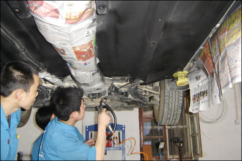 当预约时间到来之时,车主就可开着爱车奔赴4S店进行系统的检测了。首先,由于长途一般路况都不会有城市好,发动机机油及机滤的补充及更换是非常必要的。其次,专业维修技师会对车辆的轮胎、底盘进行细致的检查,并对有问题的部分进行修理或更换。需要注意的是,此时车主可将自己检查到的问题告诉维修技术,以便他们用专业的仪器分析检测。
