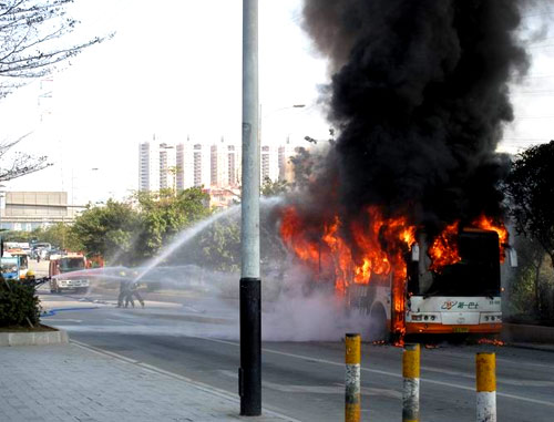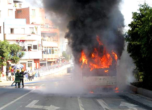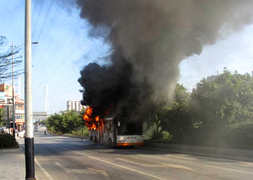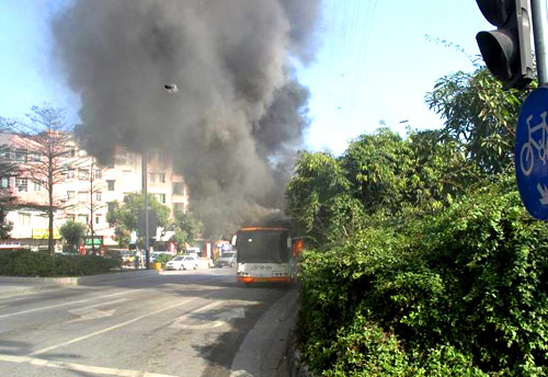 大洋网讯 记者 黎建科报道 今日上午10点,一辆公车在广州市科韵路与中山大道交汇处发生火灾。据向我们报料的目击市民黄先生称:现场火灾很大,浓烟滚滚,乌烟蔓延几百米高。并没有看到有人员伤亡。发生火灾的公交车是属于一汽巴士公司。同时我们也接到有网友报料称,事故造成科韵路大塞车,不少本想从黄埔大道转科韵路的司机被迫绕道中山大道。 截止记者发稿时,还没收到有人员伤亡以及车辆的起火原因的报告。大洋网将继续关注事件的发展,敬请广大网友关注。 最新进展:据前方记者报道,目前事故车辆已被拖走,现场交通恢复正常,事故并没有造成人员伤亡。 浓烟滚滚 消防员加紧灭火 幸无人员伤亡 消防员加紧灭火 浓烟滚滚 |