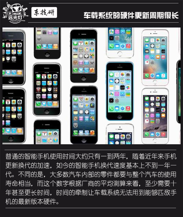 除此之外,即便使用最新的硬件系统,从软件系统开发到最终搭载在车上还需要非常长的时间,很有可能车载系统还没放在车上,硬件系统就已经过时了。