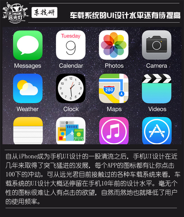 当读到这里的时候你应该就会明白,车载系统完败于手机系统的原因是多方面的,而目前CarPlay以及Android Auto等功能的出现实际上是车载系统向手机系统的一种妥协。车载系统要想达到如同手机系统一样的水平恐怕还有很长的路要走。 |