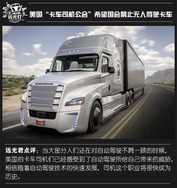 ● 美国“卡车司机公会”希望国会禁止无人驾驶卡车