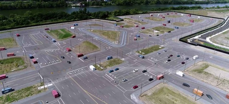 这一模拟场地名为ALMONO,是由一个旧钢厂改造而来。场地中有一个巨大的转盘,还有假的汽车和可以移动的人体模特,可以毫无征兆的出现在街道上。里面甚至还有一些容器一样的东西可以当作建筑物,模拟车辆的视线被遮挡时的行驶状况。