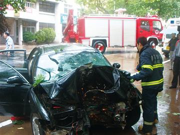 昨日下午3时许,在开发区舟山岛街上,一辆由北向南高速行驶的黑色别克轿车突然撞向路西边一棵大树,车体严重变形,车内5人被卡在车内动弹不得。随后赶到的120急救人员、110民警、119消防官兵和路人合力将被困人员救出。事故导致该车驾驶员当场死亡,其余4人被送往医院抢救。 黑色轿车撞上大树 昨日下午,记者在现场看到,别克轿车撞在大树上,安全气囊已经打开,车体严重变形,前挡风玻璃破碎,青岛市公安消防支队特勤三中队的消防官兵正在救援。 “我突然听到‘砰’地一声,我估计是有车撞了,然后出门一看,一辆黑色轿车径直撞在树上,发动机前盖都掀了起来,这棵大树的树皮被剥掉了。”附近宾馆的目击者尹女士告诉记者,现场太惨了,驾驶员被困在里面,方向盘卡在脖子上,脸色发白,满嘴是血。 记者在现场看到,消防官兵先用破拆工具将车后门和右侧车门强行打开,救出后座的3人和副驾驶位置的1人。并由120急救人员送往附近的黄岛中医院。随后,消防官兵又从后座进入用工具将驾驶室座位切割,这才将被死死卡在驾驶室的驾驶员救出。120急救人员经过现场检查发现,该驾驶员心跳呼吸全无,已经当场死亡。 “这些人应该都喝酒了,现场有很浓烈的酒味。”目击者王先生说。 喝完喜酒出了大事 随后,记者从黄岛中医院了解到,车内受伤的4人其中两人伤势较重,一名伤者肺部损伤,另一人颅脑损伤,其余两人均为轻伤,一人前臂软组织挫伤,一人面部擦伤。 “我们都喝多了,真后悔,本来是个好事,现在却成了坏事。”一名受轻伤的乘客叹气道,一朋友10天前刚生了个男孩,就把六七个好朋友聚在一起喝个喜酒,中午在饭店吃饭时就喝了30多瓶啤酒,随后又去酒吧唱歌。“我也记不清到底怎么回事了,醒来的时候已经在医院了。”这名伤者说,事发时他们刚从这条路上的酒吧出来没跑多远就撞了。 昨晚,记者从开发区交警大队获悉,死者为该车驾驶员,至于是否属酒后驾车,目前警方正在进一步调查。 |