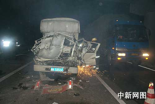 3月23日凌晨1时26分许,在金丽温高速金华往温州方向梅岙隧道口往南100米处,发生一起两车追尾恶性交通事故,3名被困人员当场死亡。该段高速迅速陷入瘫痪。 接到报警后,温州消防、高速交警、120急救中心人员迅速赴现场救援。1时40分许,消防官兵赶到现场发现,一辆运载海鲜的五十铃货车撞上前面另一辆大货车,经过猛烈撞击后,二辆货车紧贴在一起,五十铃货车因撞击,整个车头全部向里凹进,车上三名人员被困。 消防官兵立即展开救援行动,用牵引车将两车拖离,实施破拆,经过消防官兵十多分钟的的紧张救援,3名被困人员被转移出驾驶室。 据了解,五十铃货车上的3名被困人员经急救中心医护人员确认当场死亡,大货车司机被高速交警带走调查。 |