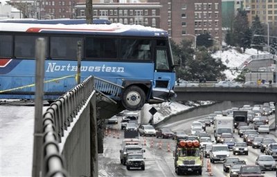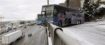 美西雅图2学生巴士相撞 车头至前轮悬空10米(图)