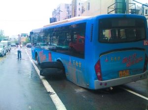 现代快报7月24日报道 “天天坐公交车,还是头一回碰上这种事,这一震,哎哟!”几名乘客揉着腰部说。昨天下午,一辆82路公交车行驶至白下区大光路与御道街路口时,突然“咚”的一声,一“屁股”坐在了马路上。“公交车把车轮都开掉了!”路人看见诧异不已。然而,最可怜的还是一车乘客,被吓得不轻。