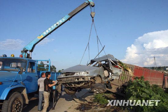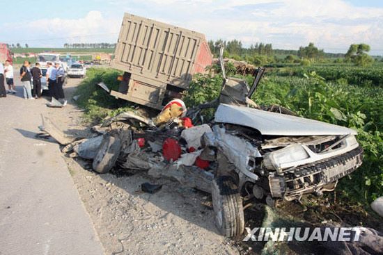 哈尔滨重型货车碾碎小轿车3人身亡(组图)