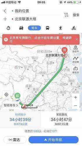 那为何在丽江打滴滴的李女士的行程单,终点却到了北京联通? 李女士的行程单显示,从丽江市古城区庆云路定位北京联通大楼,驾车行程常规路线用时34小时47分钟,3097.2公里,红绿灯10个。