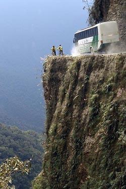 玻利维亚 北永加斯山路 位置:在拉巴斯和歌罗伊歌镇之间 惊险度:地球上最危险的路,也被称为“死亡之路” 。贯通40英里山路,最窄的地方只有10英尺,1000英尺的路是垂直冲入下面的热带雨林,而且还没有护栏。