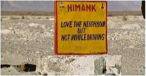 穿越努不拉峡谷时,接近印巴的战区。1947年,巴基斯坦和印度脱离英国统治,从此开始纷争不断。现在两个国家都拥有核能力。2000年美国总统克林顿称两国边境为世界上最危险的地区。通过印度陆军的北普路检查站之后,路况突然变得令人惊奇,有柏油路,甚至还有路边护栏。