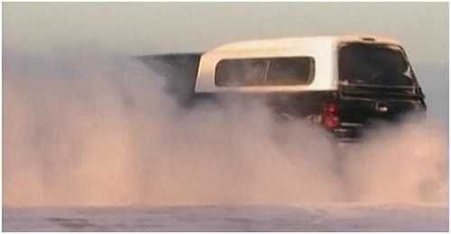 在冰河上开车,即使在太阳当头的时候,能见度也不高。你会发现,前车排出的废气似乎停留在空中。废气排出后短短几秒钟内,从120多度降至零下40度。废气中的水蒸汽马上变成悬浮在空中的小冰粒。造成冰雾。