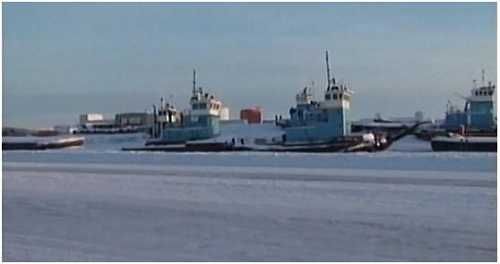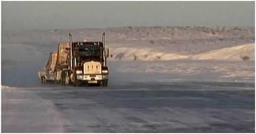在冰河上行驶的卡车都非常巨大,因为要拖很多的货物。当这些卡车经过的时候,你会听到卡嚓卡嚓的冰的碎裂声。两部大卡车之间必须至少间隔400公尺的距离,防止把冰压跨。虽然卡车一直不停的在运送物品,但这些长途运输的物品很贵。靠海维生仍然占原住民家庭的70%。