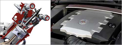 好在,缸内直喷技术解决了这一问题。由于缸内直喷发动机的喷油嘴被移到了汽缸内部,因此缸内油气的量不会受气门开合的影响,而是直接由电脑自动决定喷油时机与份量,至于气门则仅掌管空气的进入时程,两者则是在进入到汽缸内才进行混合的动作。由于油、气的混合空间、时间都相当短暂,因此缸内直喷系统必须依靠高压将燃油从喷油嘴压入汽缸,以达到高度雾化的效果,从而更好的进行油气混合。其中混合油气的压缩比越高的发动机,它的动力表现越强大,相应的节能效果越明显。奥迪3.2升FSI缸内直喷发动机的压缩比达到了10.3:1;凯迪拉克3.6升SIDI 双模缸内直喷发动机的压缩比达到了11.3:1。此外,缸内直喷系统的燃烧室、活塞也大多具有特殊的导流槽,以供油气在进入燃烧室后能够产生气旋涡流,来提高混合油气的雾化效果与燃烧效率。