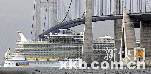 价值百亿人民币邮轮挤过桥洞 空间仅剩4cm