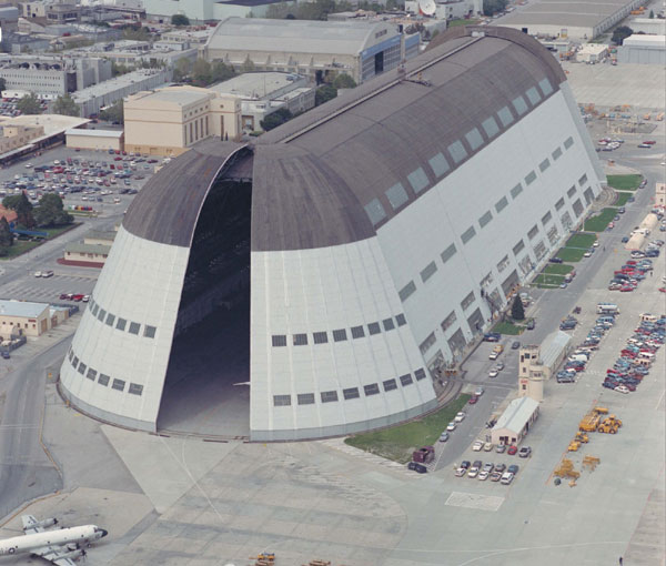 在美国硅谷的山景城(Mountain View)和桑尼维尔(Sunnyvale)之间有一个巨大的流线型建筑物。这个庞然大物有198英尺(60米)高,两面的墙向内倾斜,两头各有一对能对开的滑门,它们与弧形的顶棚自然衔接,好像是一座教堂的圆屋顶。这就是美国海军的一号机库(Hangar One)。