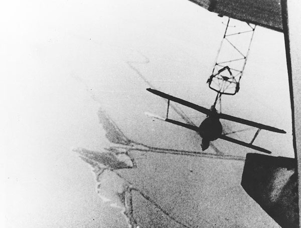 “梅肯”号正在回收F9C-2“雀鹰”侦察机,这需要飞行员的高超技术。