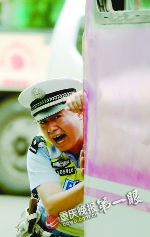 司机违章后拒不认错 女交警向司机敬礼11次