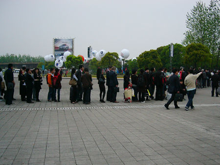 这支井然有序的队伍是在车展场外等候TAXI