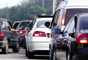 4.如果是自己真的有急事需要插队,除了要开启双闪指示灯,最好还要打开车窗向旁边的车辆抬手示意,以示尊重。