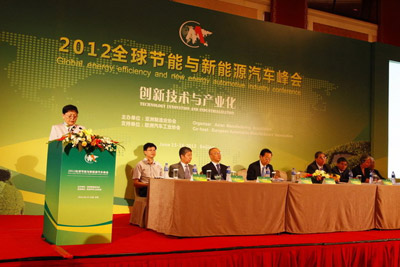 ![]() ![]() 2012全球节能与新能源汽车峰会现场 6月16日,2012全球节能与新能源汽车峰会在北京中国大饭店隆重举行。与会嘉宾重点就节能汽车和纯电动汽车的技术路线、未来发展方向、行业标准、适宜的商业模式等议题展开深入研讨。