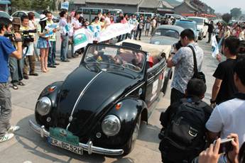 我最最喜爱的甲壳虫来北京了,太兴奋了太幸福了!一共五台老爷车甲壳虫,岁数加起来超过300岁,千里迢迢的从德国开来北京,说是也来庆祝新中国的60华诞!我一直在关注这个超龄车队的进程,路途中的亮点还真不少!