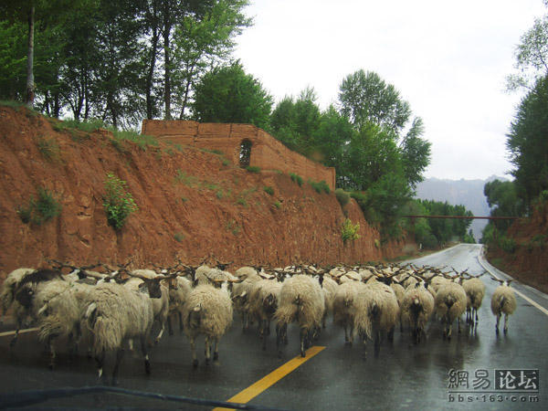 它们的尾巴随着统一的节奏一搭一搭,毛则像披着的毯子,屁颠屁颠,不要急着开车,缓下来看羊屁股也饶有趣味