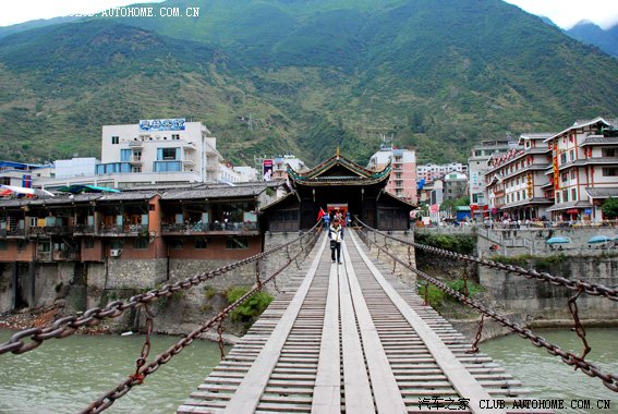 这就是新修的二郎山隧道,以前要从右边的一条小土路走,看了一眼都觉得害怕,真不知道以前的人怎么走的。二郎山隧道全长4.1公里是国内最长的公路隧道。经过隧道后一路的景色和云南很像,于是我就呼呼了!不知过了多久师傅叫醒我们,告之已经到达泸定。我们狂奔到泸定桥上开始乱拍一通(泸定桥门票10元)。