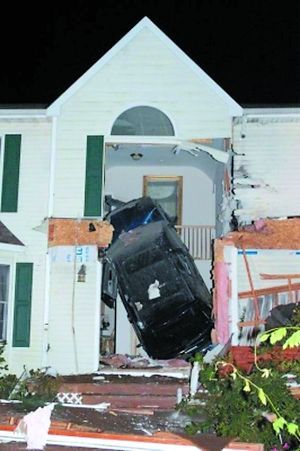 美国一男子醉驾演特技飞车直上二楼