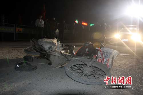 4月24日20时20分左右,在哈尔滨市香坊区民生路与香滨路交口附近发生一起严重的交通事故,一辆华泰圣达菲吉普车撞飞一辆摩托车后又接连撞倒几名行人,造成3人死亡2人受伤。 记者赶到现场时,死伤者人员已经被120急救车运走。肇事是一辆银灰色的华泰·圣塔菲吉普车,车牌号为黑AGY063号。交警正在将肇事司机从车上拉下来,肇事司机30左右岁,穿一件白色T恤。口中不断说着,“我和你们走,我和你们走。”从言语表情可以判断,司机有明显酒后驾车嫌疑。随后,肇事司机被警察带上警车。