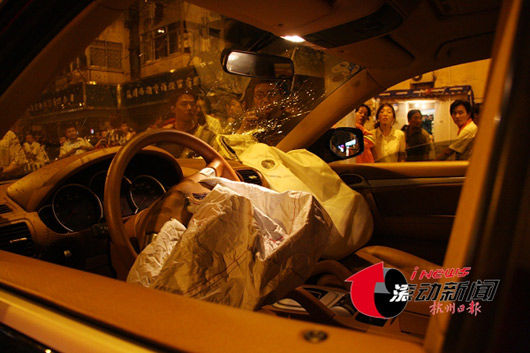 ![]() 驾驶座前沾满血迹的风挡玻璃内,摆放有浙江大学的停车证。 版权作品,请勿转载。 ![]() 四川在线8月5日报道 4日21时40分左右,在杭州莫干山路浙江电视台门口,杭州首条被称为爱心斑马线的旁边发生一起车祸,一辆保时捷卡宴越野车将一名行人撞出30多米远,该行人后因抢救无效死亡。 据了解,被撞者是一位17岁的外地打工妹,事发后被送往医院,但终因抢救无效死亡。据目击者称,保时捷内走出一位年约20岁的女孩,长得很漂亮,车内还有一名男性,年纪大约20岁。围观群众反映,两人从车里走出时,可以闻到一股酒味,另外,两人均自称自己是司机。 最新消息称,警方确认肇事者为年轻男子魏某,其涉嫌酒后驾车。据悉,浙江电视台门前的这条斑马线为今年5月份杭州设立的第一批爱心斑马线,该线为警示“70码”事件而设立。据《重庆时报》 另据浙江在线8月5日报道 昨天晚上9点20分左右,莫干山路浙江广电集团门口,一记刺耳的刹车声划破夜空,令人不寒而栗。 在一辆保时捷凯宴的冲撞下,17岁女孩马芳芳惨叫一声,身体飞出20多米,鲜血飞溅在爱心斑马线上。 医院证实,她被当场撞死。保时捷上的一男一女被交警带走。 撞车声14楼都听得到 昨天晚上10点,记者赶到事故现场,莫干山路浙江广电集团门口的爱心斑马线附近。 肇事车辆是一辆黑色的保时捷凯宴,车牌号为浙A892E9。 车内,前座的两只安全气囊已经全部弹出,车头副驾驶前的挡风玻璃上,有蛛网状的碎裂痕迹。 广电集团的保安单师傅说,他在晚上9点20分听到刹车声跑出来,目击了车祸。 被撞者是一名年轻女孩,当时正和小姐妹一起沿爱心斑马线由东往西步行过马路,被由南往北行驶的保时捷撞了。 “‘砰’一声巨响,女孩子被撞飞20多米,地上还有一大摊血。”单师傅指着血迹说。记者看到,血迹离斑马线近20米距离。 广电集团职工刘小姐当晚加班,身在14楼,还是听到了撞人那一刹那的巨响,赶紧跑了下来。“很沉重的一声闷响,我们办公室的人都听到了!” 女孩被撞飞后,头北脚南地躺在路中间,膝盖以上到头部,蔓延着一大摊血。小姐妹似乎没受伤,在旁边给她做心肺复苏。 保时捷上是一对时髦男女 附近散步的居民李岩说,当时老远就听到加速声,他还在跟妻子议论:“是不是有人飙车?”话没说完,就听到一声巨响,随后女子惨叫,然后是刺耳的刹车声。他肯定地说:“当时保时捷的时速,肯定超过80码。” 有着20多年驾龄的市民杨征宇就住在附近,正好路过。他看到,从保时捷上下来一对年轻男女,男的当时坐在驾驶室,女的坐副驾驶室,看上去都20多岁,没受什么伤。 “男子身穿黄色T恤、牛仔裤,高高瘦瘦的;女子身穿白色背心,挺有气质的,两人的打扮很时髦。”刘小姐说。 随后交警赶到,对两人做了酒精测试。附近的杨师傅听到了这对男女和交警的几句交谈。“那个女的主动跟交警说,车子是她开的。可刚才我明明看到是她坐在副驾驶位上,这不是撒谎吗?” 在保时捷车上,有一张浙江大学的停车证。一名自称浙江大学员工的目击者表示,那不是正式员工的证件。 记者在现场看到,该路段限速60码。 17岁安徽女孩当场死亡 事故中被撞的女孩被送到了新华医院。昨晚11点,记者赶到时,医生已宣布她死亡。 据介绍,死者名叫马芳芳,今年17岁,安徽阜阳人。 急诊室的陈医师表示,女孩在晚上9点多送到医院时,已经没有生命体征。随后医院抢救了1小时,由于头部受伤严重,最终不治身亡。 记者在医院看到,马芳芳全身盖着白单,只有头部露在外面。她的一头长发上,脸上、齿缝里还残留着许多暗色血块,双腿被夹板加固着。 在医院,记者见到了马芳芳的男友。他在床头痛哭,他说她是来杭打工的。 目前,医院已经通知了马芳芳的家人。截至记者凌晨发稿时,他们还未赶到。 驾驶者系男性为酒后驾车 昨晚零时,记者从交警处了解到,经查证,驾驶人是男子魏志刚。 记者在现场看到交警酒精测试的结果,魏志刚体内酒精含量为0.227mg/ml,系酒后驾车。 拱墅交警大队事故中队中队长徐勇说,车不是魏志刚本人的,他自称车是他父亲的。魏志刚的驾照是1999年领的,车内两人自称是朋友,女的姓范。 新闻助读 5月18日,杭州首条爱心斑马线正式启用,设在莫干山路密渡桥路口,对面就是浙江广电中心。原先的白色线条改为黄底白条相间,长为14米,宽度由4米增加到了7米,非常显眼。斑马线的中间印有大大小小的红色爱心图案,写着“爱心路上,有我有你”的温馨标语。 截至6月22日,杭州出现8条“爱心”的斑马线,除位于莫干山路省广电集团门口的首条爱心斑马线外,吴山广场北口、杭州高级中学门口、环城西路市中医院门口、黄龙路黄龙体育中心门口、庆春路太平门直街附近、莫干山路大关小学门口以及北山路断桥东口的斑马线上也都画上了大大的爱心。 杭州市公安局 交通警察局 发布的情况说明 8月4日21时25分左右,魏志刚(29岁,浙江省杭州人)驾驶浙A·892E9凯宴牌小型越野客车在杭州市拱墅区莫干山路由南向北行驶到浙江省广电集团门口时,与横过道路的青年女子发生碰撞,该女子经新华医院抢救无效于22时40分死亡。 接到报警后,拱墅交警迅速赶到现场组织抢救伤员,勘察事故现场,经初步调查。魏志刚涉嫌酒后驾车,已抽取血样待检,目前事故原因还在进一步调查中。 一位网友 发在论坛上的帖子 刚才看到的一刻,我和我同事腿都麻掉了…