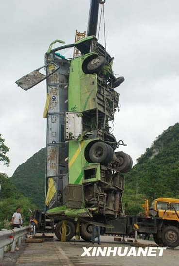 贵州境内客车翻覆4人死亡33人受伤(组图)