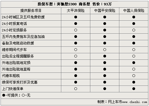 三家保险公司在提供基本险种之外还可提供不同的附加保险,并且考虑的更为周到与人性化。各家的附加险种基本都考虑到了各种实际可能遇到的出险状况,并且三家保险公司的附加险差别也较为相近,最终还是要看消费者如何选择自己需要的特别险种。如:涉水损失险、车轮单独损失险等险种对部分车主还是十分有用处的。 三、投保后所提供的服务项目